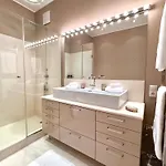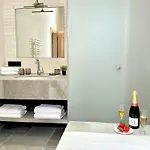 O design interior inclui mesa de trabalho e TV e TV de tela plana com canais via satélite. O quarto inclui casa de banho separada, banheira e chuveiro, secador de cabelo e lençóis de banho.